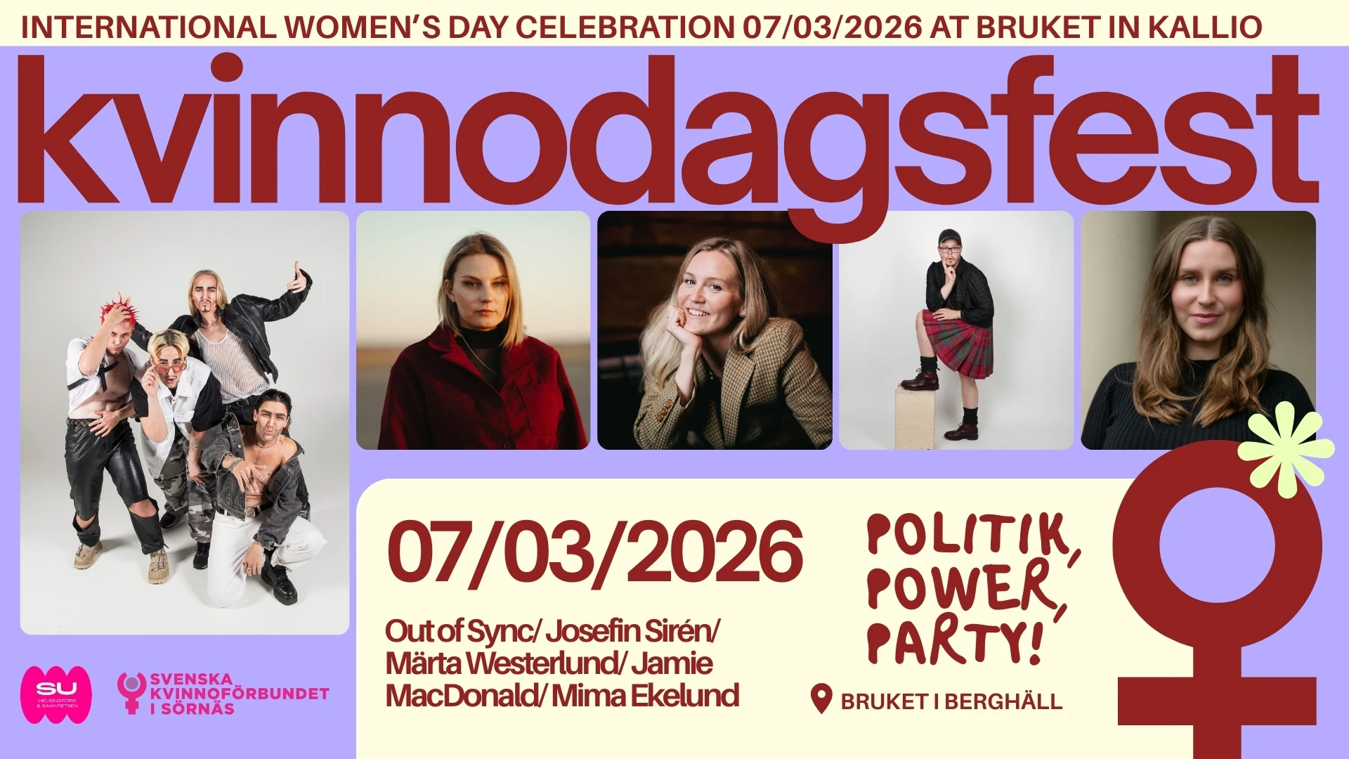 The biggest Women’s Day pre-party of the year takes place on Saturday, March 7 at 6 PM! In collaboration between SU in Helsinki and Svenska Kvinnoförbundet i Sörnäs, we invite you to an energizing celebration on the evening before International Women’s Day.