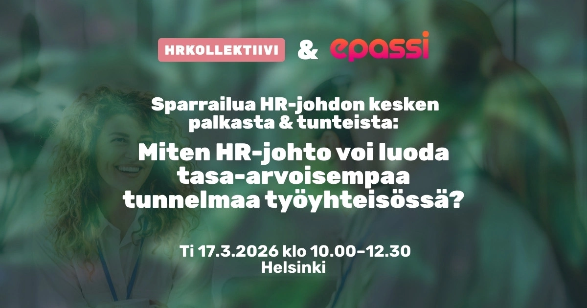 Hae mukaan HRKollektiivin ja Epassin yhdessä mahdollistamaan HR-johtajien lounastilaisuuteen, jossa tarkastellaan palkan ja tunteiden välistä yhteyttä – erityisen ajankohtaisesta näkökulmasta juuri nyt, keskellä palkka-avoimuuskevättä ja käynnissä olevia palkkakierroksia.