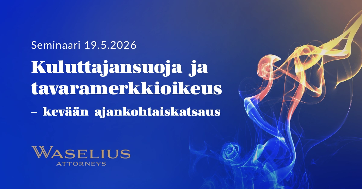 Tervetuloa iltapäiväseminaariimme, jossa käsittelemme tämän kevään keskeisimpiä teemoja kuluttajansuojan ja tavaramerkkioikeuden alalta.