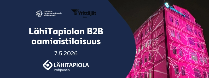 Tervetuloa LähiTapiola Pohjoisen ja Oulu2026 kulttuuripääkaupunkivuoden yhteiseen B2B aamiaistilaisuuteen torstaina 7.5.2026 LähiTapiola Pohjoisen toimistolle (Kirkkokatu 9, 90100). Aamiaisen aikana pääsemme kuulemaan mielenkiintoisia puheenvuoroja ja verkostoitumaan alueen yrittäjien kesken. Lue lisää ohjelmasta alta ja varaa paikkasi!