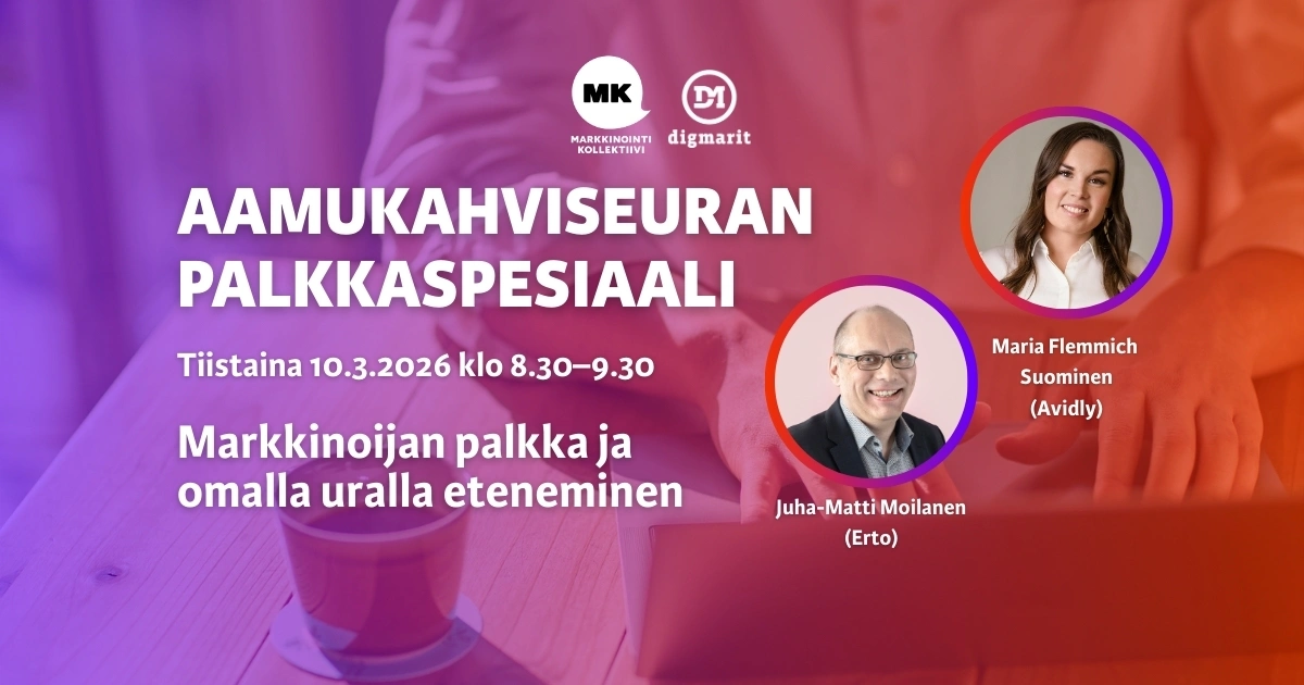 Vuoden 2026 MK Aamukahviseuran palkkaspesiaalista saat avuksesi palkkasuosituksen markkinoinnin alalla toimiville sekä kannustusta omalla uralla etenemiseen. Tule nappaamaan vertaistukea ja vinkkejä arkeesi!