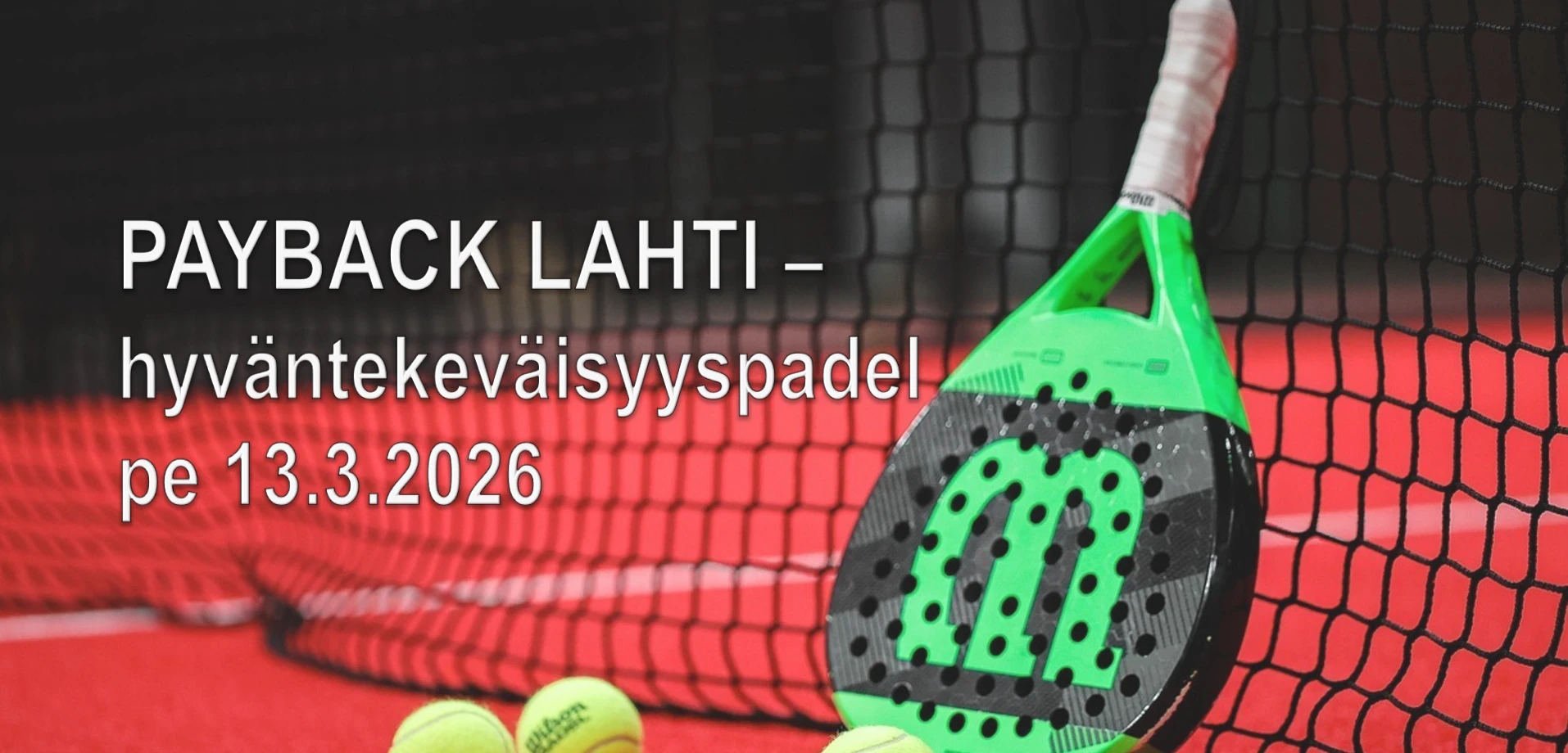 Payback Lahti -hyväntekeväisyyspadel pelataan perjantaina 13.3.2026 Padel Lahti- Salpausselkä Parkissa.