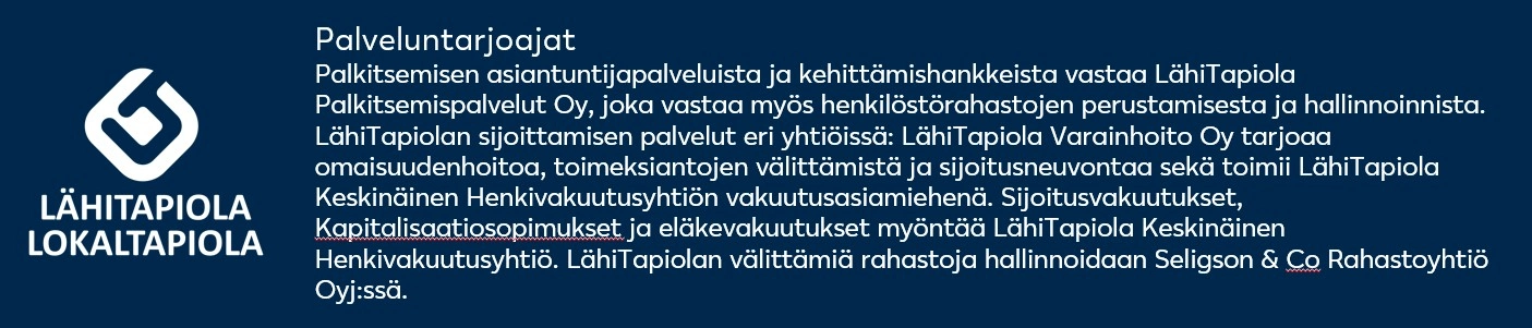Webinaarissa kuullaan ajankohtaisia näkemyksiä palkitsemisen kehittämisestä ja sen vaikuttavuudesta. LähiTapiolan asiantuntijat kertovat, miten dataa hyödyntämällä voidaan tunnistaa eri yrityksille ja henkilöstöryhmille toimivimmat palkitsemisen ratkaisut: LähiTapiolan analyytikko Pauliina Vuorinen käy läpi palkitsemisen arkkityypit ja niiden erot, LähiTapiola Palkitsemispalveluiden johtaja Jaakko Hänninen kertoo, miten tietoa hyödynnetään palkitsemisen kehittämisessä ja LähiTapiola Henkiyhtiön myyntijohtaja Simopekka Katajala esittelee käytännön ratkaisuja palkitsemiseen. Webinaarin juontaa LähiTapiola Henkiyhtiön markkinointipäällikkö Tuomo Mikolanniemi.