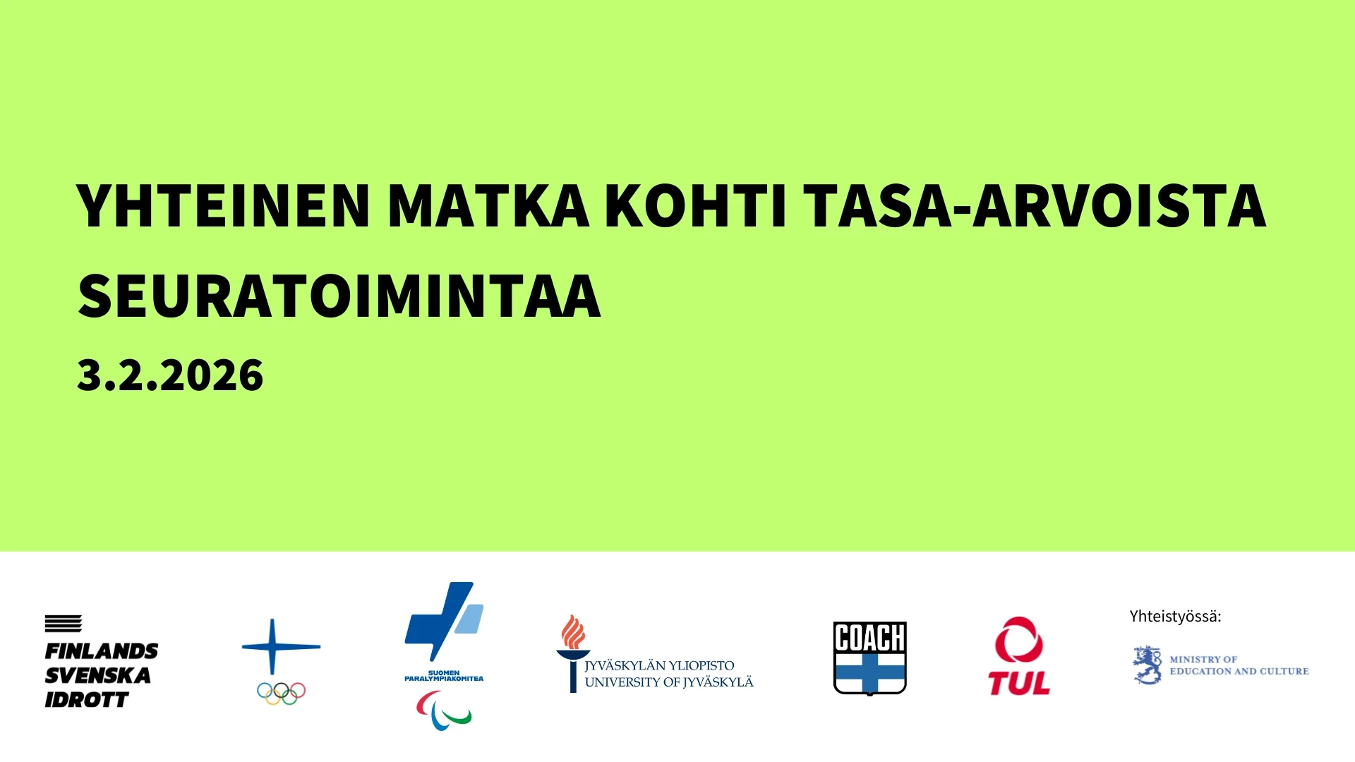Tilaisuus on osa Kohti tasa-arvoista urheilua – yhteinen matka 2025-2026 -hanketta. Tilaisuudessa noudatetaan turvallisemman tilan periaatteita.