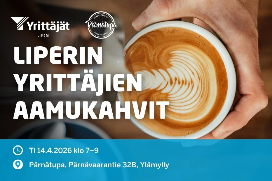Tarjolla aamukahvit. Tapahtuma on maksuton ja avoin kaikille yrittäjille. Ilmoittaudu mukaan viimeistään 8.4. Järjestäjänä toimii Liperin Yrittäjät, lisätietoa saat: liperin@yrittajat.fi. Tapahtumaa tukemassa Pärnätupa.