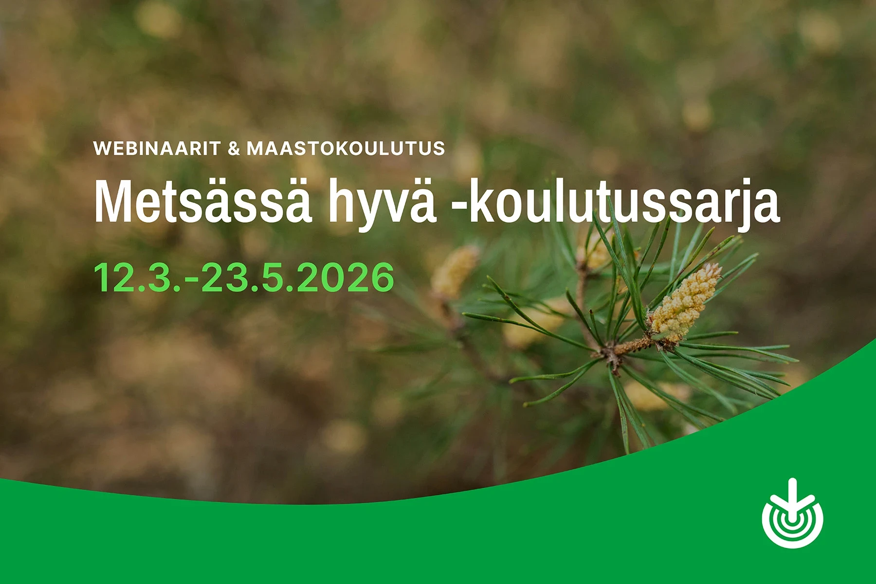 Kurssi koostuu kolmesta ytimekkäästä webinaarista sekä maastokurssista, jonka järjestää paikallinen metsänhoitoyhdistyksesi. Maastokoulutusta ei kannata missata, sillä ne ovat kiitettyjä ja kehuttuja kohtaamispaikkoja, jossa metsänomistajien heimo pääsee kokoontumaan yhteisen asian äärelle. Maastotapahtumia järjestettään yhteensä 26 paikkakunnalla. Maastokoulutuksiin on rajallinen paikkamäärä, joten kannattaa olla ajoissa! Halutessasi voit osallistua pelkästään webinaarehin, jotka ovat maksuttomia.