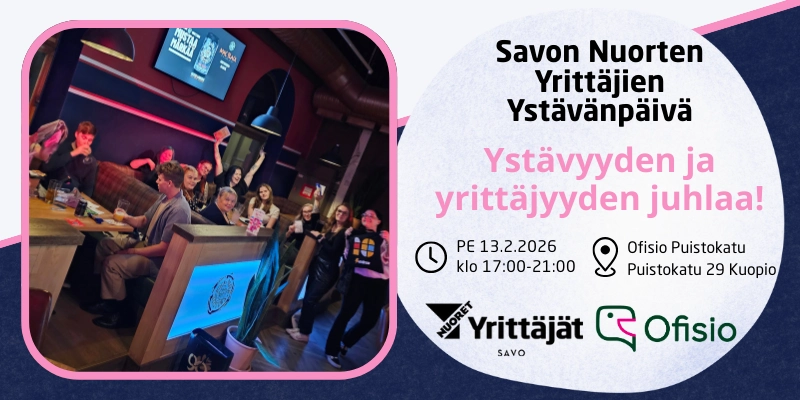 Tervetuloa viettämään unohtumatonta Ystävänpäivän etkoja Savon Nuorten Yrittäjien kanssa Ofisio Puistokadun mahtaviin tiloihin! 💖✨