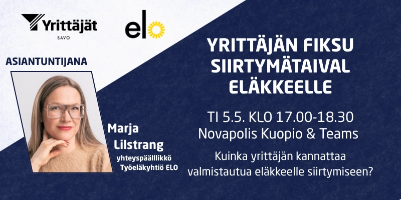 Asiantuntijapuheenvuorossa Työeläkeyhtiö Elon yhteyspäällikkö Marja Lilstrang.