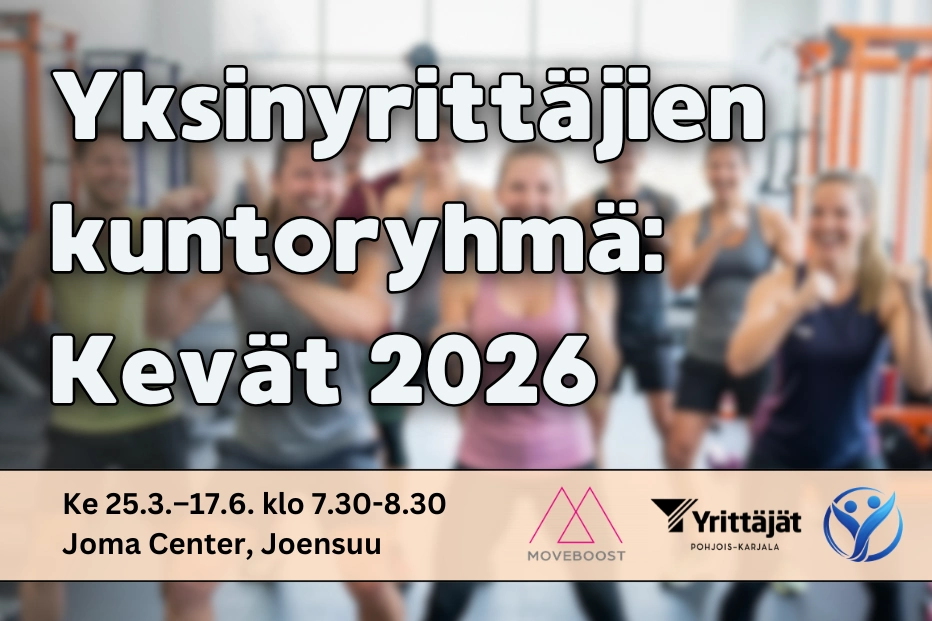 Haluatko lisää energiaa arkeen, säännöllistä liikettä viikkoon ja rennon tavan tavata muita yrittäjiä? Yksinyrittäjien kuntoryhmä tarjoaa matalan kynnyksen mahdollisuuden liikkua yhdessä, ilman suorituspaineita, mutta hyvällä fiiliksellä ja ammattitaitoisessa ohjauksessa.