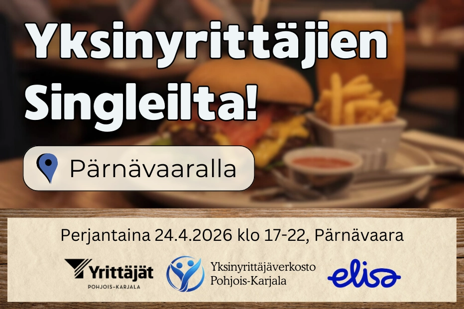 Singleilta on maksuton ja tarjoilua varten pyydämme ennakkoilmoittautumisen 17.4.2026 mennessä (mukaan mahtuu 40 ensimmäiseksi ilmoittautunutta). Lisätiedot joonas.hiltunen@yrittajat.fi p. 050 448 8468. Tapahtuman järjestää Pohjois-Karjalan Yrittäjät yhdessä Elisan kanssa.