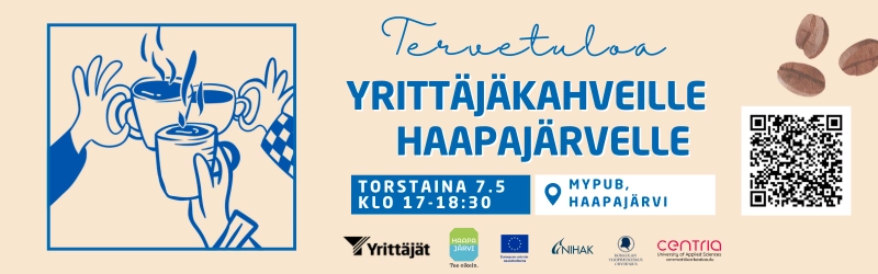 Keski-Pohjanmaan Yrittäjät kutsuu Haapajärven ja lähialueen yrittäjät Yrittäjäkahveille torstaina 7.5.2026 klo 17.00–18.30. Tilaisuus on avoin kaikille yrittäjille.